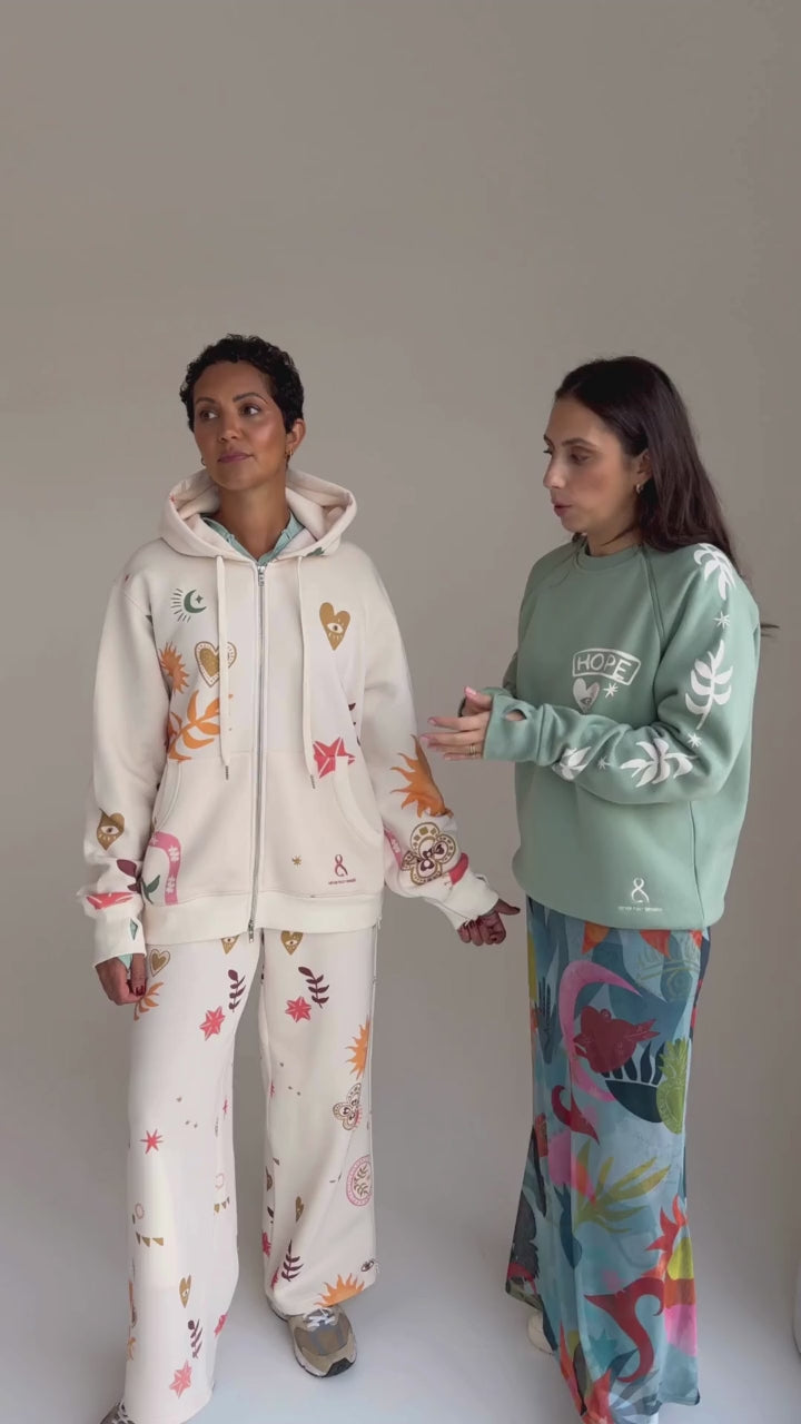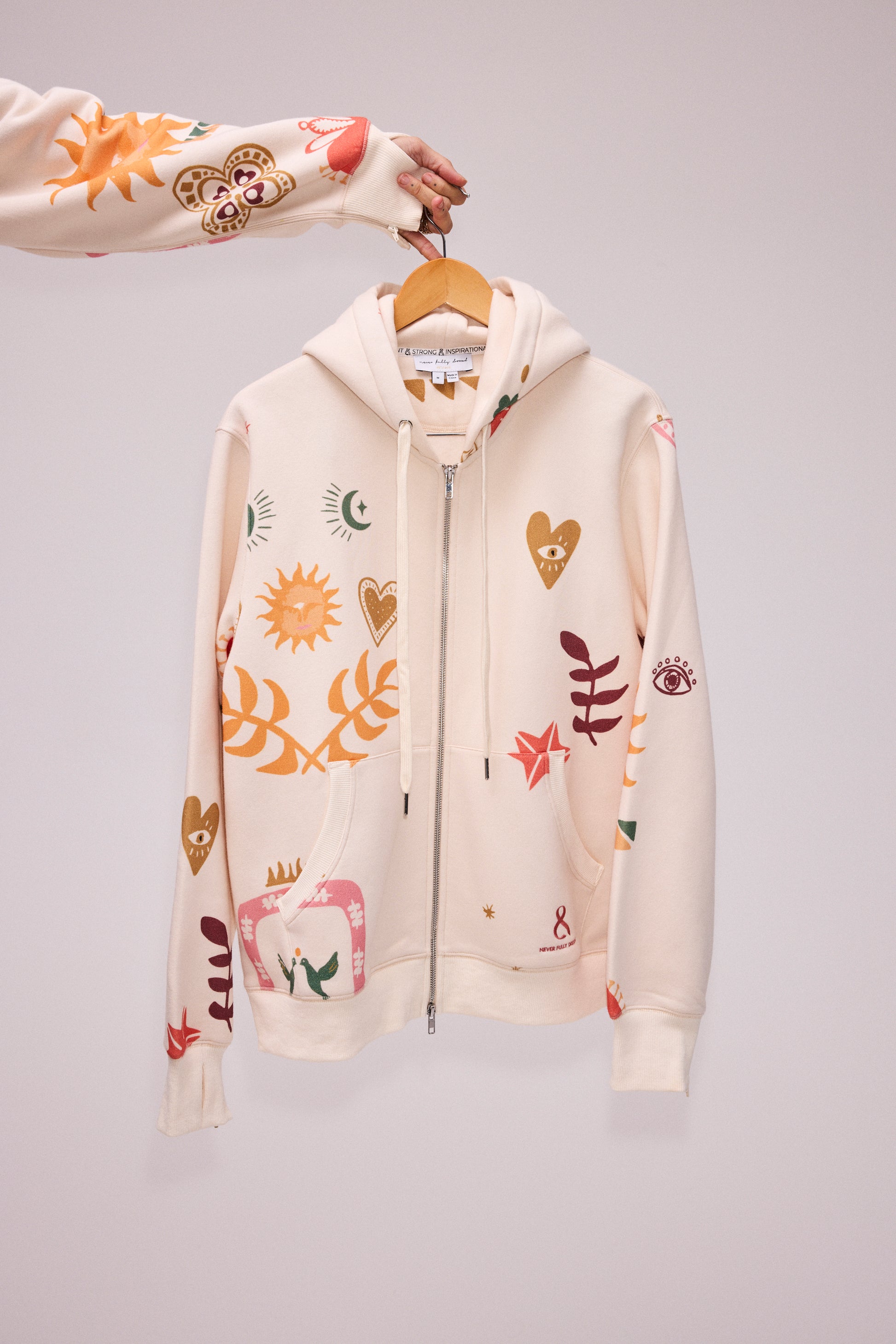 Introducing the NFD x P&B Cream Sundazed Accessible Hoodie—a stylish, accessible piece designed using Porto & Bello's registered design for ultimate comfort and functionality. This exclusive collaboration combines fashion and function, with zippers extending from the cuffs to the waist, allowing for easy removal during treatment sessions without any disruption. Thoughtfully crafted for individuals with mobility challenges, it empowers wearers to put on and remove the hoodie independently and with ease.