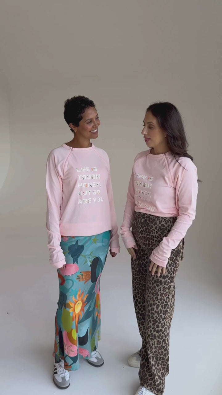 Elevate your treatment-day style with the P&B x NFD "Life Is Tough" Long Sleeve T-shirt — crafted for ultimate comfort and accessibility. This exclusive design blends the signature flair of Never Fully Dressed with Porto & Bello’s design-registered accessibility features, including discreet diagonal chest zips for easy port and line access and two-way zips on each arm to accommodate IVs, PICC lines, and other medical needs