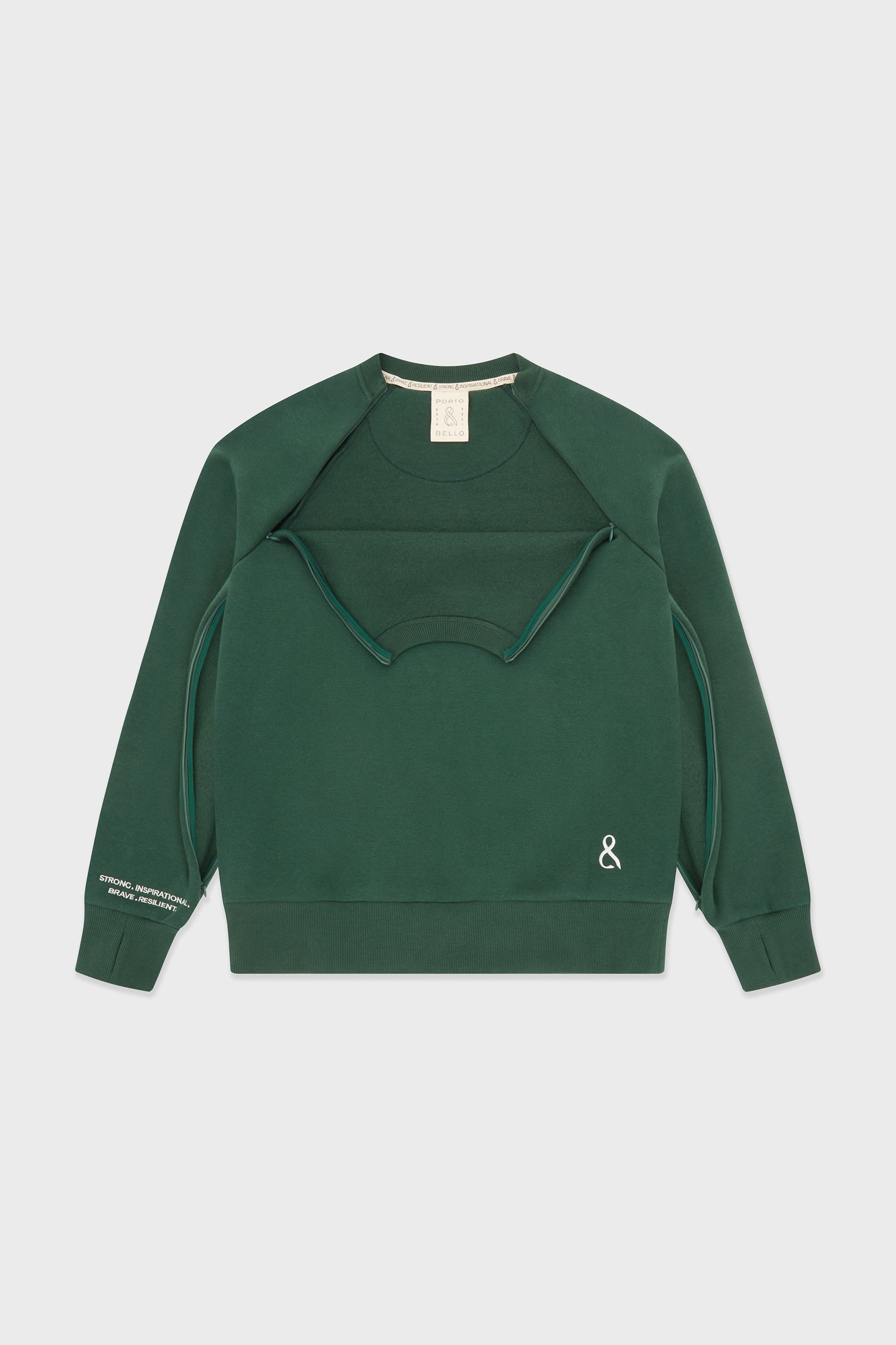 Enhance your wardrobe for treatment days with our P&B accessible "The Crew" sweater. Crafted for comfort and convenience, it features diagonal chest zips for port and line access, along with two-way zips on both arms for IVs, PICC lines, and more.