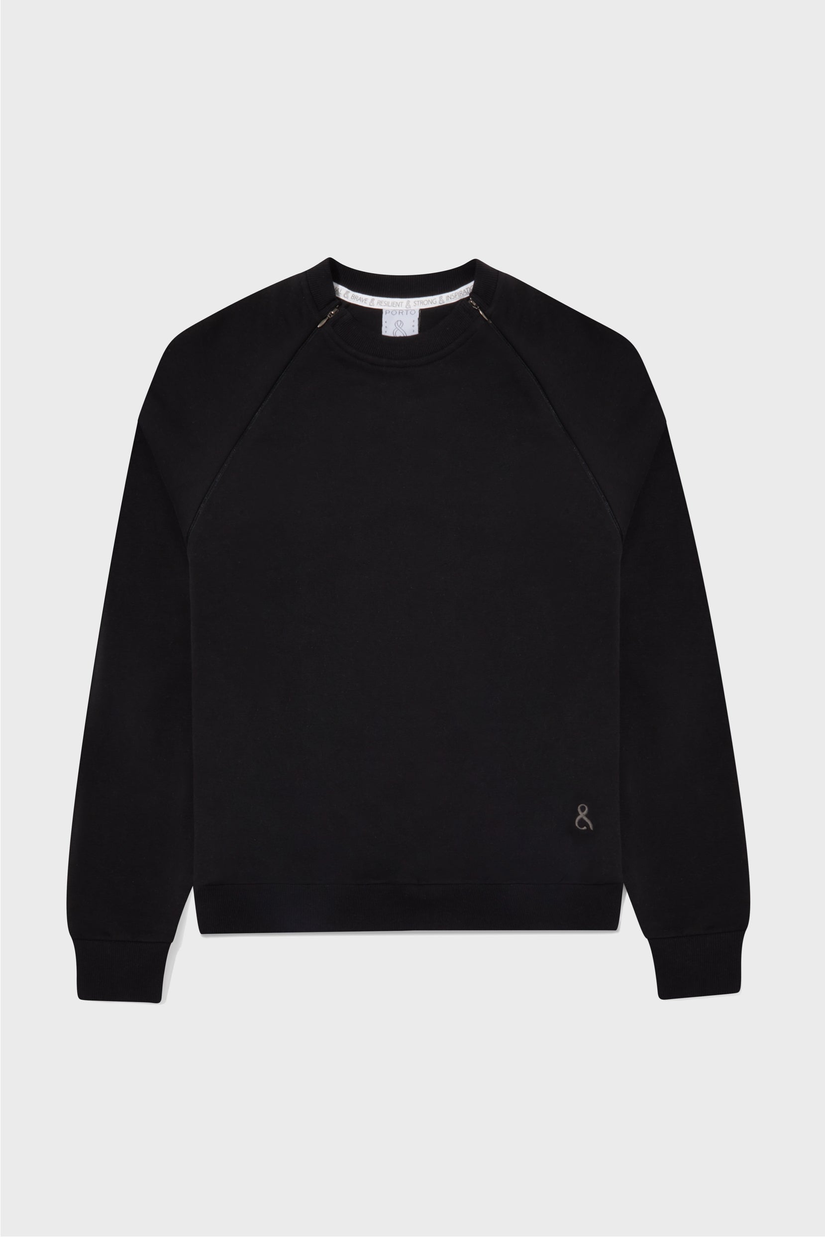 Enhance your wardrobe for treatment days with our P&B accessible "The Crew" sweater. Crafted for comfort and convenience, it features diagonal chest zips for port and line access, along with two-way zips on both arms for IVs, PICC lines, and more.